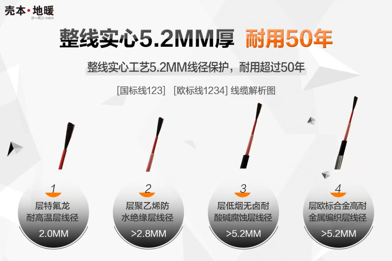 目測碳纖維地暖線徑。優質碳纖維電地暖線纜總線徑厚度應該在5.2mm以上,線徑越厚則保護性能越好,要保證碳纖維電地暖運行50年,碳纖維電地暖的線徑厚度就一樣要達標。偷工減料減少線徑厚度,對保護性能有影響。